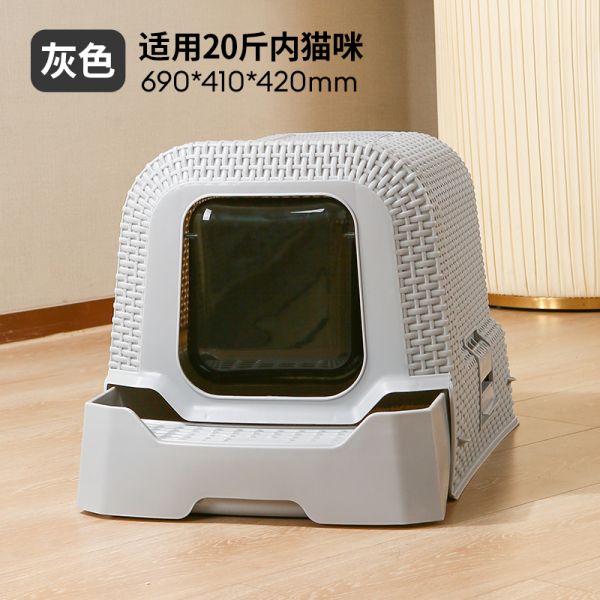 中恒 藤编风全封闭式猫厕所5101猫沙盆猫砂盆膨润土豆腐猫砂【CY】